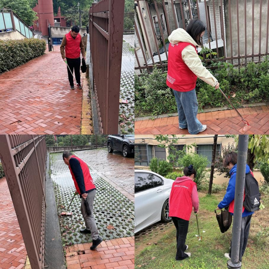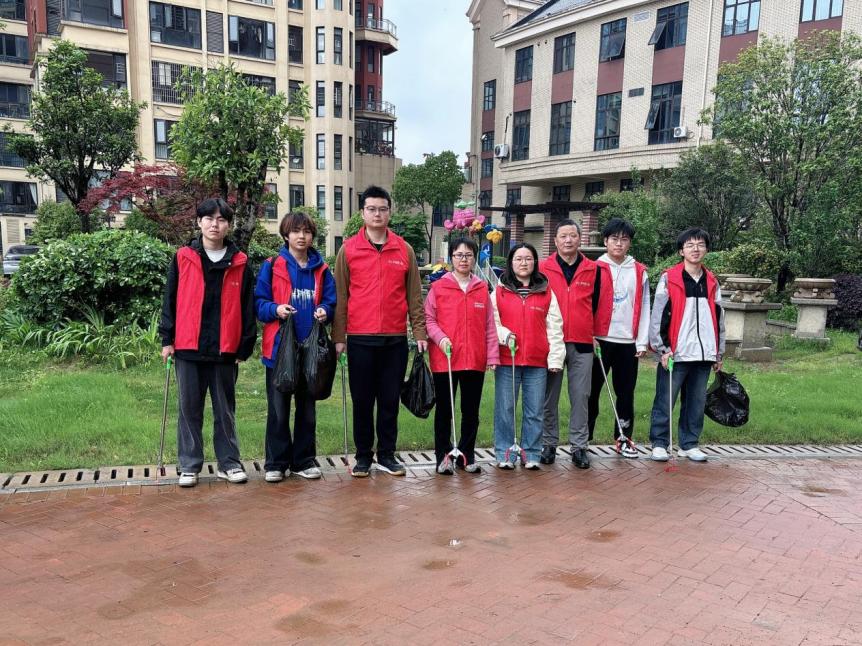 2026年4月22日下午三点,工学院教师第一支部党员及学生志愿者深入学校东门旁汉地尚街小区,开展清洁环境文明创建主题志愿服务活动,此次活动是支部落实“红航”品牌建设、推动党员“亮身份、亮承诺、亮岗位”的一线实践,以实际行动传承红色基因,践行初心使命,推动支部“红航”品牌建设走深走实。