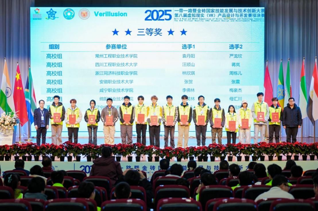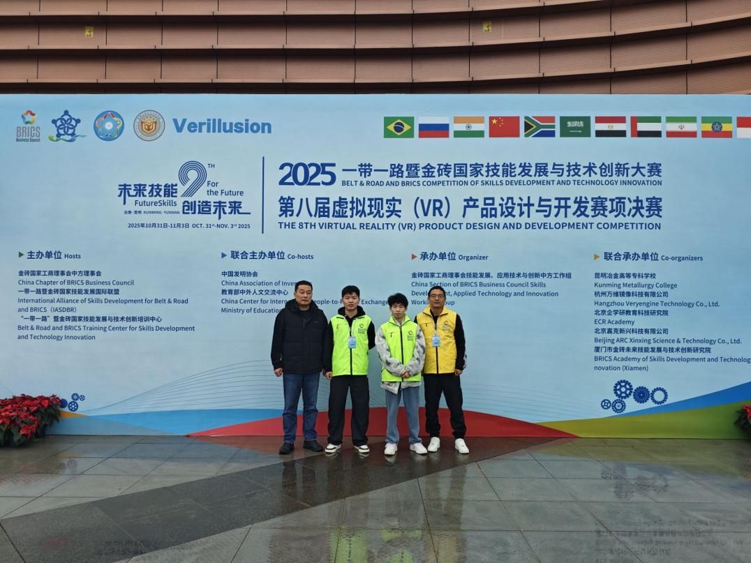 近日,第八届“一带一路暨金砖国家技能发展与技术创新大赛”虚拟现实(VR)产品设计与开发赛项全国总决赛在昆明冶金高等专科学校成功落幕。在我校工学院杨彦伟、钟昌清老师的悉心指导下,机械设计与制造专业学生李佛林、梅豪杰荣获全国三等奖。