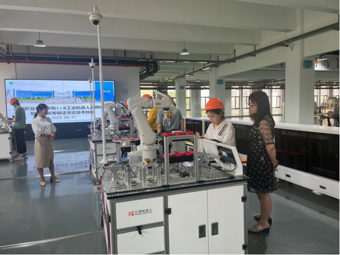为认真贯彻落实国务院《国家职业教育改革实施方案》及教育部《关于在院校实施“学历证书+若干职业技能等级证书”制度试点方案》的文件精神,深化职业教育综合改革,结合学校“八个一”工程要求,提高工学院人才培养质量,我院于6月7日至8日,进行了2022年第一次“1+X”工业机器人应用编程职业技能等级(初级)考核,胡新和院长、柳明珠书记到现场督考。