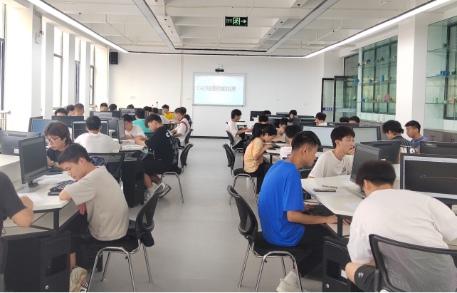 6月10日上午,在虚拟仿真中心601机房举行《机械制图》课程的AutoCAD技能抽测考核,从工学院21级随机抽取的42名学生参加本次考核,考核要求在120分钟时间内完成规定的基本图形的绘制,重在考察学生对AutoCAD软件的熟练应用程度。考核过程中,同学们态度认真,神情专注,技法娴熟,大部分选手都能完成考核任务,且图形效果好。