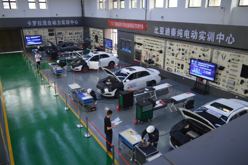 为深入贯彻落实《国家职业教育改革实施方案》精神,根据教育部《关于扩大1+X证书制度试点规模有关事项的通知》,经湖北省教育厅和北京中车行高新技术有限公司职业教育培训评价组织审批,我院2020级汽车专业的150名学生,于2022年6月11日至25日,在咸宁新产业实训基地新能源汽车中心开展“1+X”智能新能源汽车证书项目的考核工作。