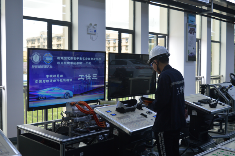 本次考核由工学院新能源汽车系组织实施,选取了“新能源汽车电子电气空调舒适技术(中级)”作为本次考核模块,具体包括“电子控制电路检测与维修”、“启动与充电部件检测维修”、“电器与控制部件检测维修”、“空调与舒适部件检测维修”等四个项目。