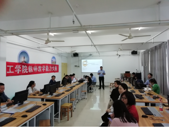 4月28日,在理工楼803教室,工学院成功举办了2022年教师教学能力比赛。比赛时间为一天,上午,由各专业创新教学团队选派的5组教学团队在803教室现场完成作品制作;下午,各参赛团队进行作品展示,工学院全体无课专任教师参加观摩,工学院教学副院长杨彦伟主持本次活动,工学院院长胡新和、书记柳明珠参加了活动。