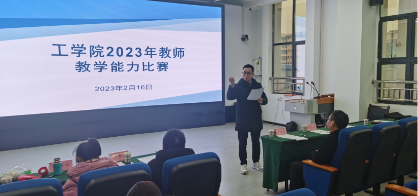 2月16日,在虚拟仿真大楼报告厅,工学院成功举行了工学院2023年教师教学能力比赛,工学院各专业遴选出了四支队伍参赛,工学院当天下午没有课的31名专任教师到现场观摩了比赛,工学院教学副院长杨彦伟主持本次比赛活动。