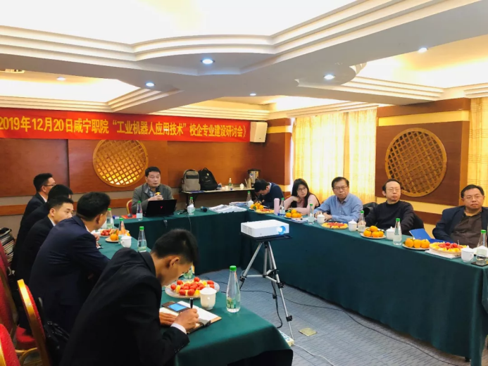 为响应国家发展战略,进一步深化产教融合,推进工业机器人技术专业校企合作工作,第二次工业机器人技术校企专业建设研讨会于2019年12月20日——22日在东莞智通教育集团举行,咸宁职业技术学院总会计师胡绍山教授、教务处吴涛处长、工学院院长胡新和教授、工学院党总支书记柳明珠、工学院副院长杨彦伟、智能装备系主任谢承、智通集团副总裁、智通教育总经理李纲领、院长黄廷胜及相关工作人员出席了此次研讨会。