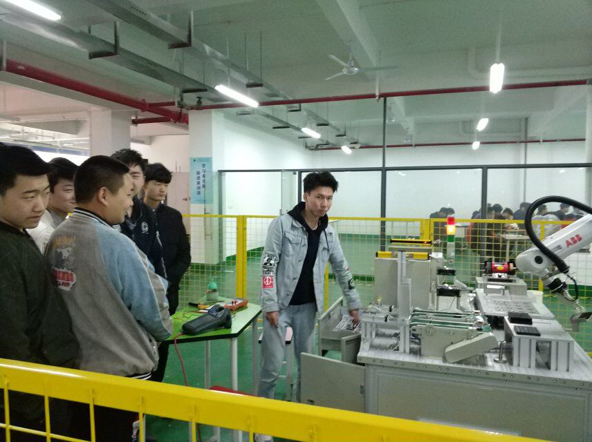 2019年3月27日下午,在工学院谢承老师的介绍下对工业机器人的发展有了认识,并参观工业机器人基地进行了现场体验,激发了学生们对现代工业的学习兴趣。学生们在现场体验后,深刻的感受到了现代工业技术技能的重要性,从而在课堂上更加专注的学习。