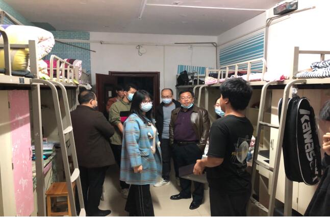 吴涛在走访过程中热情地与同学进行交谈,亲切地询问学生的学习生活情况。看到穿着单薄的同学,他忍不住一番叮嘱;看到同学在寝室学习看书,他大力赞赏并与之深入交谈;当看到卫生环境较好的寝室,他不吝表扬并鼓励他们继续保持。他特别提醒同学们对疫情的防控时时刻刻都不能松懈。他真挚的关怀和问候让同学温暖不已,瞬间消除了拘束感并主动交谈起来,宿舍里欢笑不断、关怀不断、温暖不断,气氛热烈。